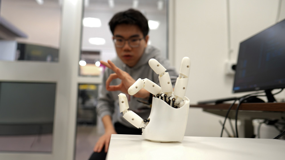 Engineers have designed a wristband that lets wearers control a robotic hand with their own movements. By moving their hands and fingers, users can direct a robot to play piano or shoot a basketball, or manipulate objects in a virtual environment. Watch video